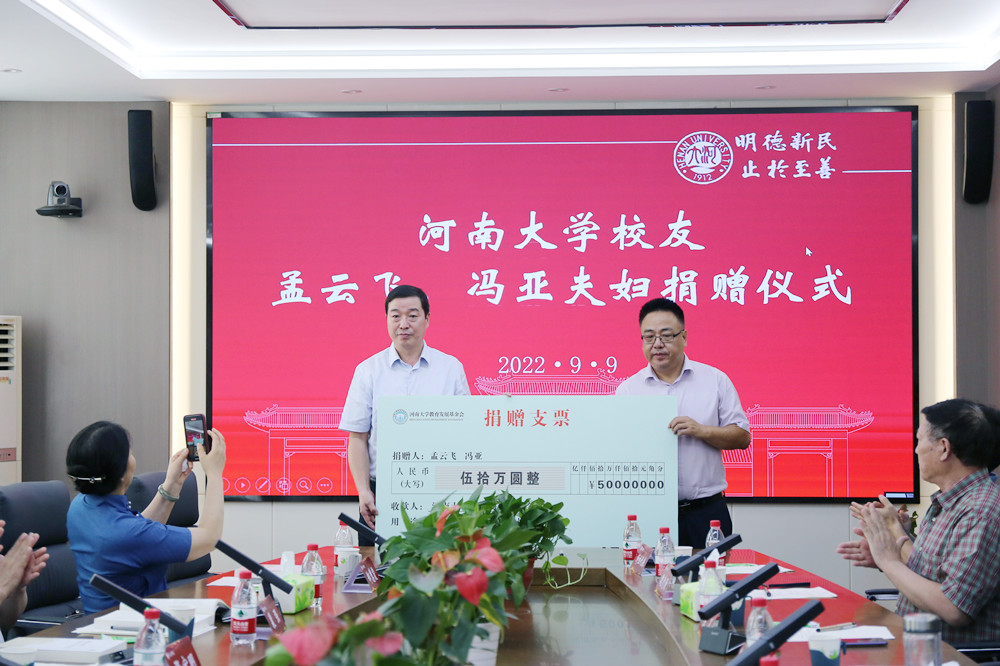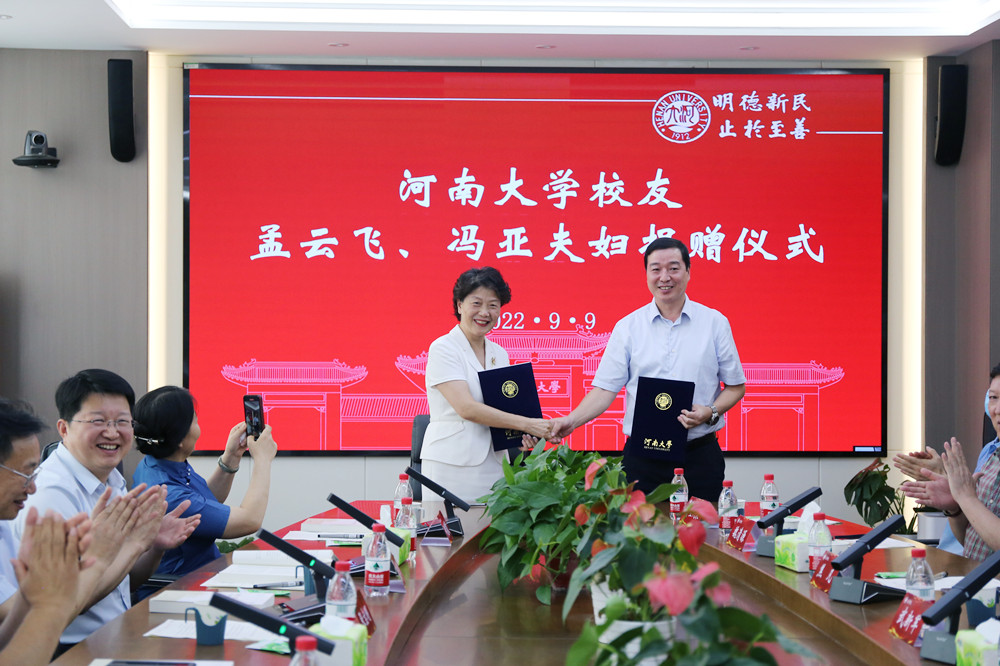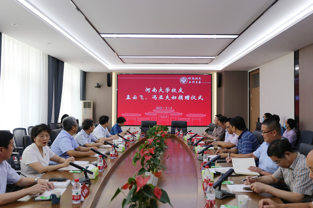张宝明向孟云飞、冯亚夫妇表示感谢。他指出,今年既是华体会注册建校110周年,又是第二轮“双一流”建设的开启之年,文学院的发展遇到了前所未有的良好机遇。学院的发展离不开广大校友和社会各界的鼎力支持,孟云飞、冯亚夫妇长期以来关注母校发展,多次进行捐赠,充分体现了河大学子对母校的挚爱,更体现出校友们的无私奉献和社会担当。他希望文学院妥善管理、运用这笔赠款,为学校“双一流”建设贡献智慧力量。