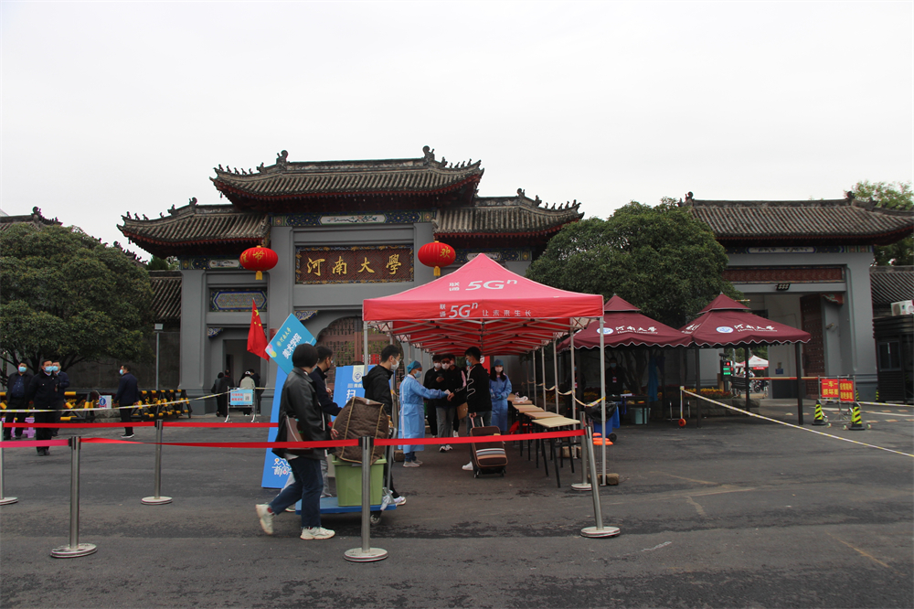 受开封寒冷阴雨天气影响,又恰逢国庆假期人流量激增,加上今年研究生新生同研究生老生同时返校,且金明校区研究生新生首次被安排在校外公寓居住,多种情况交织在一起,使得今年研究生返校迎新工作的难度增大。为此,学校做了大量准备工作:思想上高度重视,多次召开协调会、统筹会逐项布置、落实每一环节,反复强调疫情防控政策要求;行动上落实到人,相关职能部门负责人和志愿者定点定岗,研究生院全员上岗,每处通道都有研究生院领导全天带头值班;技术上实现创新,运用返校系统在线申请审批、智慧门禁系统查验核酸结果;环节上查漏补缺,除了提倡学生私家车点对点接送外,学校还于开封火车站(汽车总站)、高铁北站设迎接专车,登车口设场所码,为乘坐公共交通工具的学生提供接站服务;服务上以人为本,各站点帐篷加长加宽,各单位雨披雨伞等防水器具齐备、志愿者们统一着装有序分工、电动运输工具整装待发。在学校和研究生院的统一部署和领导下,各研究生培养单位尽职尽责,积极落实我校疫情防控期间返校迎新工作要求,保障扫场所码、防疫消杀、体温测量、刷脸入校(查验核酸)和分站报到等程序有条不紊进行。因为严寒细雨,不少老师开来私人汽车帮助搬运行李,带领新生认识校园。整个研究生返校迎新工作在寒冷天气里和难度加大的背景下,却展现出河大人所独有的温度和力度。