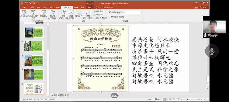 9月3日下午是“学唱校歌”专题,魏森杰向新生同学详细讲解了华体会注册校歌的创作背景与创作过程,随后,她带领同学们一起学唱校歌,“嵩岳苍苍,河水泱泱,中原文化悠且长。济济多士,风雨一堂,继往开来扬辉光。四郊多垒,国仇难忘。民主是式,科学允张。猗欤吾校,永无疆。猗欤吾校,永无疆!”那雄浑激昂的旋律,蕴涵着以自强不息、百折不挠为核心的大学精神,在欣赏和学唱的过程中,新生同学为之深深感动,沉浸其中。